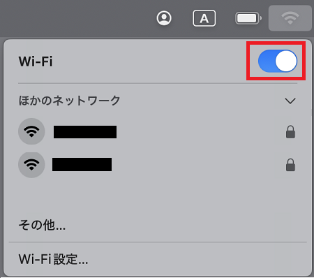 図1Wi-Fiのトグルを [ オン ] にすると,接続圏内のネットワーク一覧が表示されます.