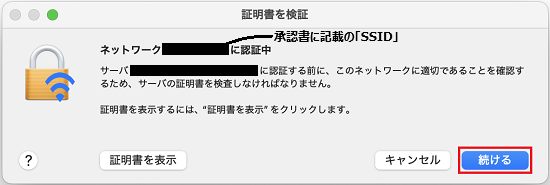 図2接続圏内のネットワーク一覧から以下の[ ネットワーク名(SSID) ] を選択します.