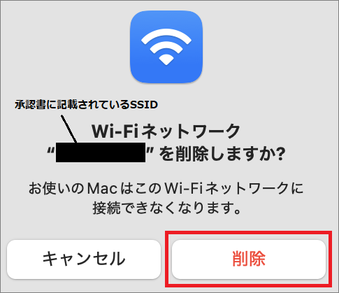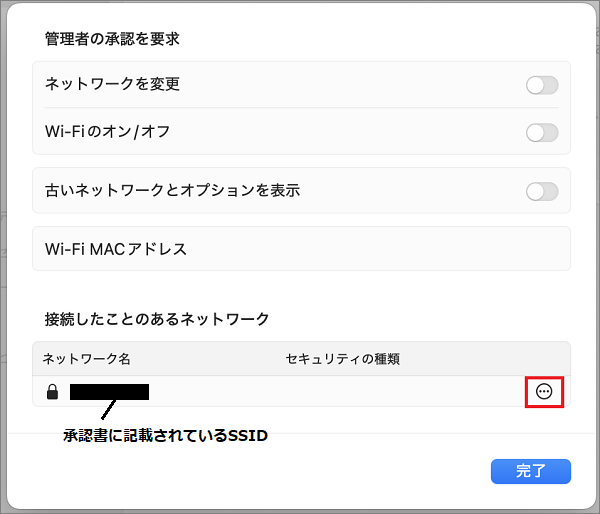 図9「接続したことのあるネットワーク」の「承認書に記載されているSSID」の横にあるアイコンをクリックします.