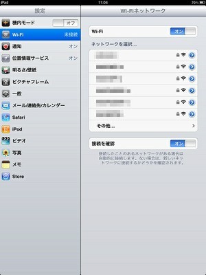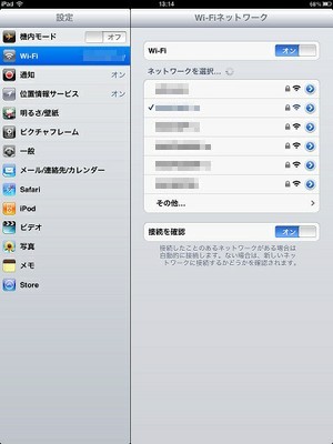 [ Wi-Fi ]を[オン]にすると,接続圏内のネットワークのネットワーク名が表示されます.